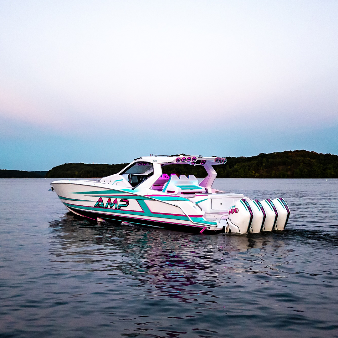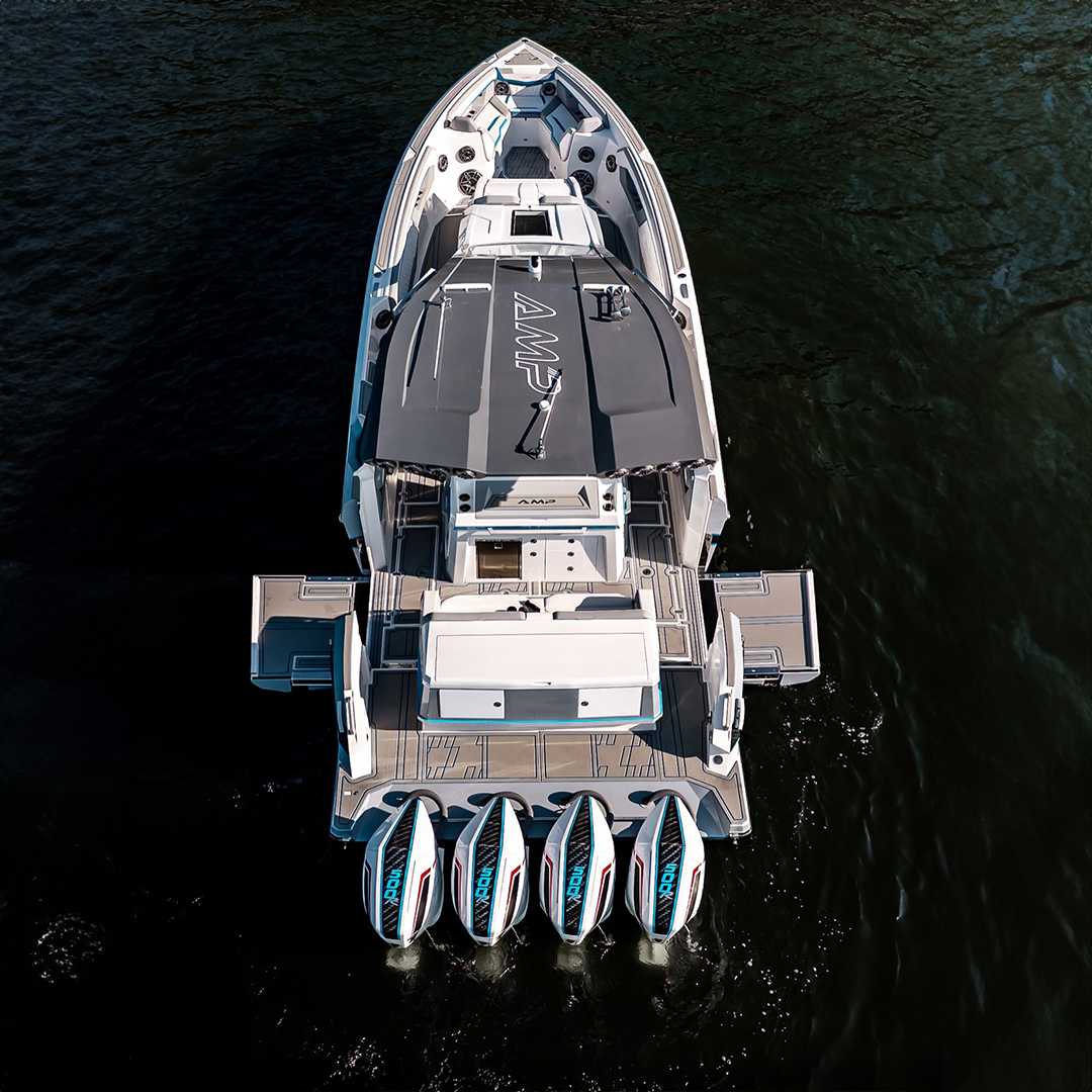 Meet the 2026 AMP 433 — our boldest creation yet. Spanning 43 feet with a wide beam, stepped hull, and customizable engine configurations.